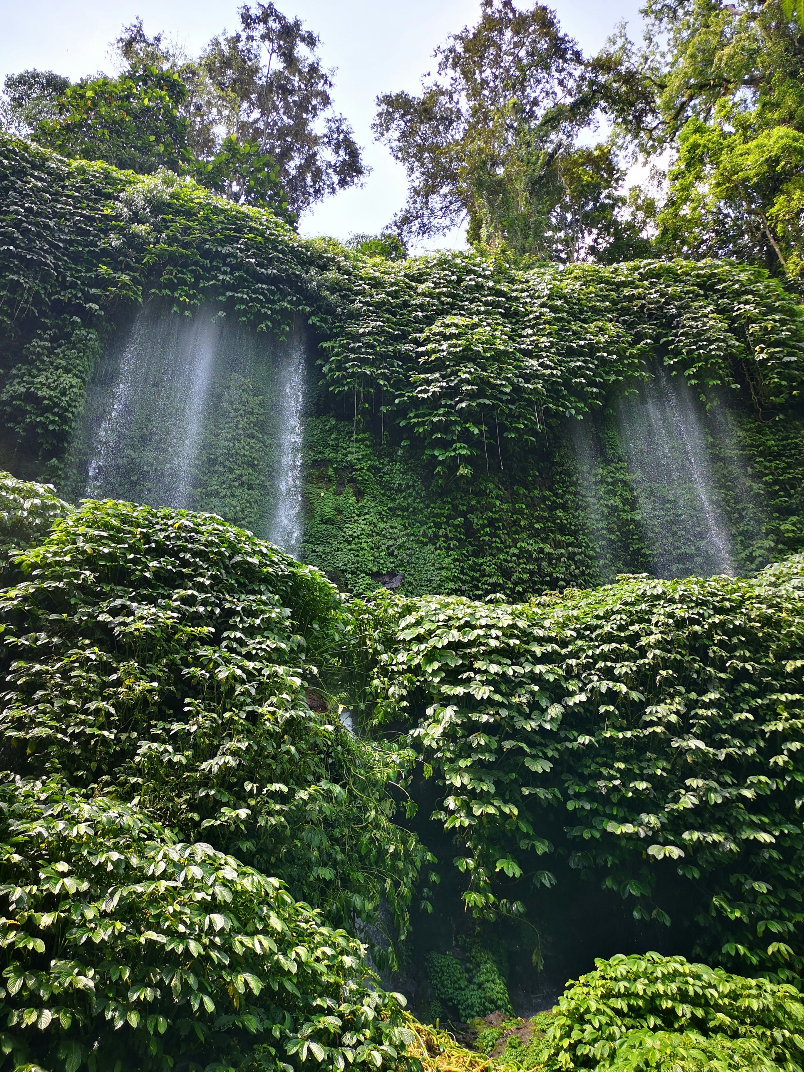 What makes this waterfall unique is that it’s backdrop is an expansive lush green cliff that has been overgrown by vines and a variety of gorgeous green plants.